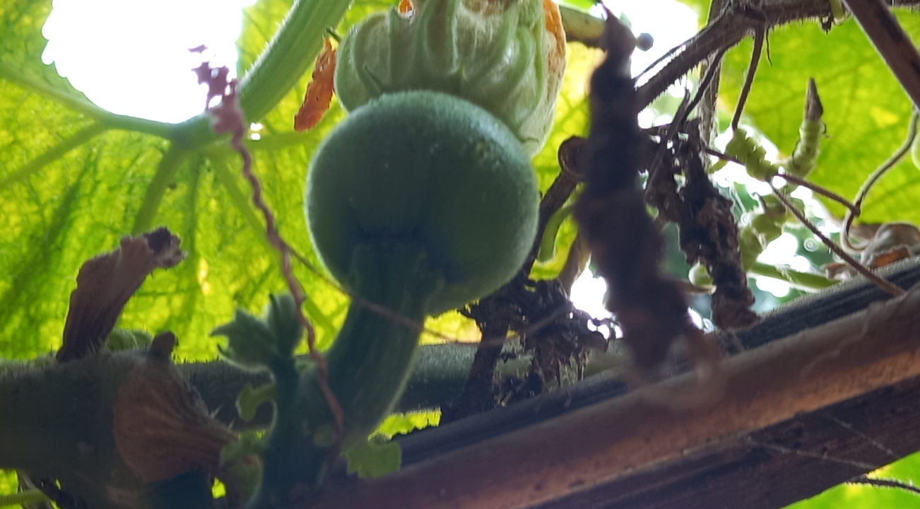 কদুর ফুল। স্ত্রী ফুল।কদুর কলি। বাড়িতে লাগানো গাছের ফুল। বেশ কিছুদিন থেকে ফুল ও ফল আসলেও, এপর্যন্ত একটি ফলও আটকায়নি। এভাবেই ফুল আসছে আর পচে যাচ্ছে।