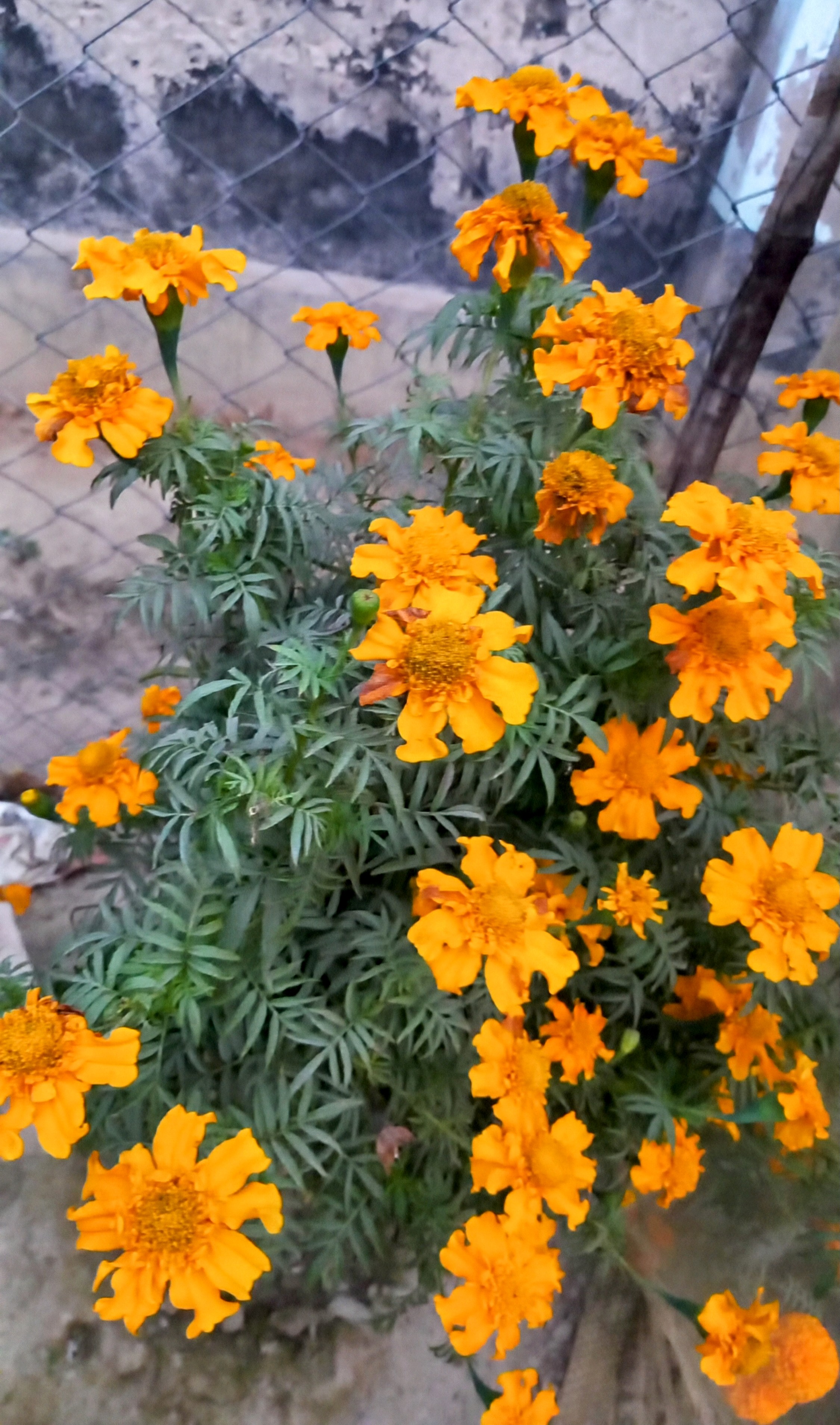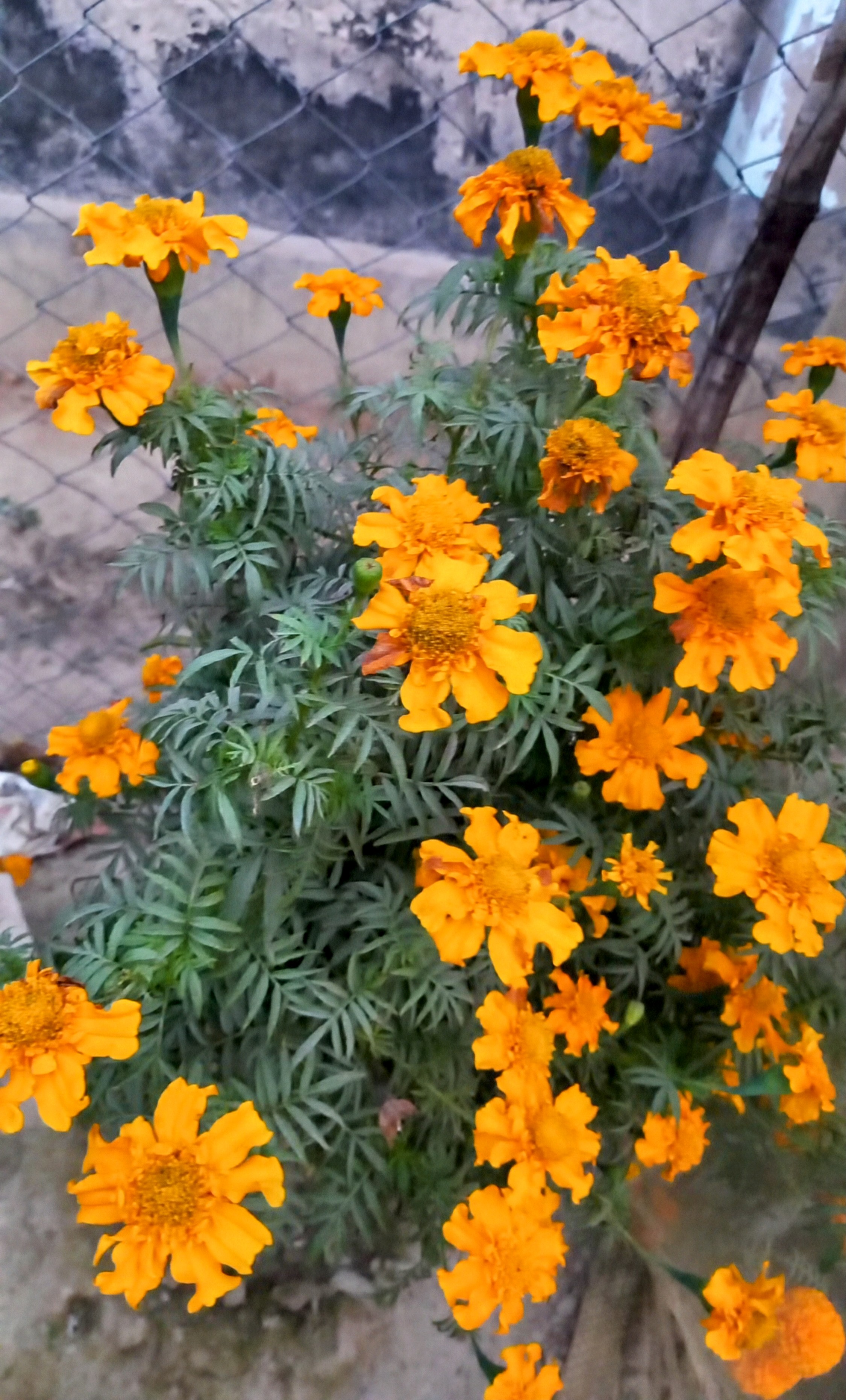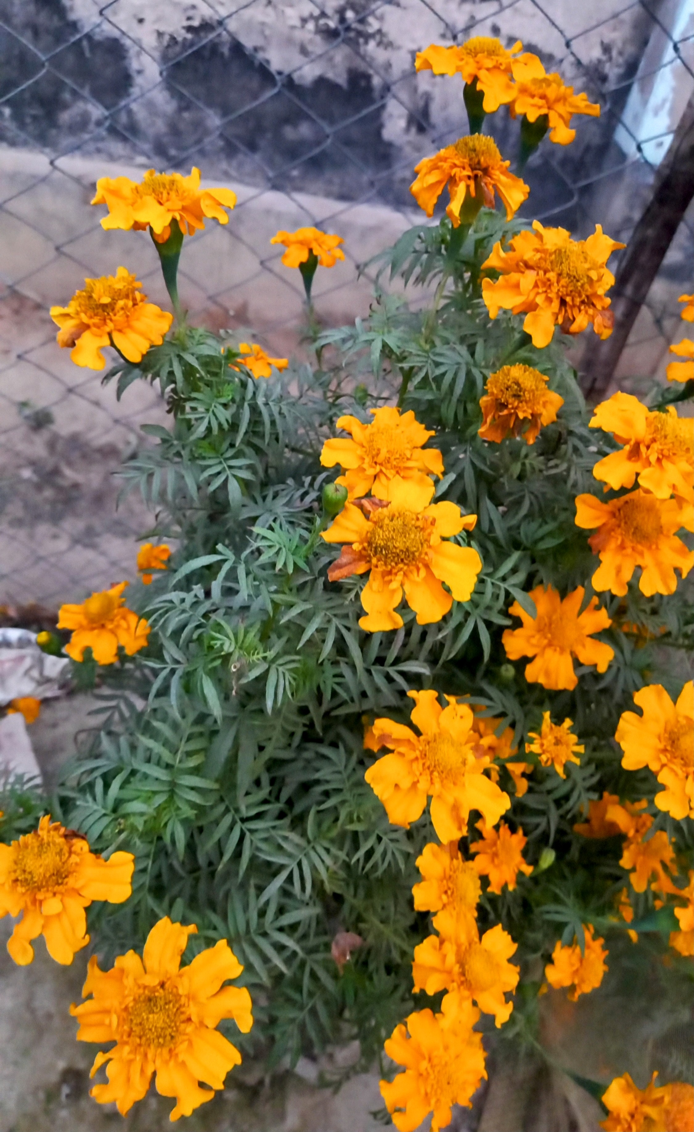 গেঁন্দা ফুল। গেঁন্দা ফুলের গাছ। সুন্দর সুন্দর ফুল ফুটেছে। তারার মত লটকে আছে। আমাকে দেখে বেড়ার ভিতর থেকে উঁকি মারছে। বুঝতে পেরেছে আমি তাদের ছবি তুলব।