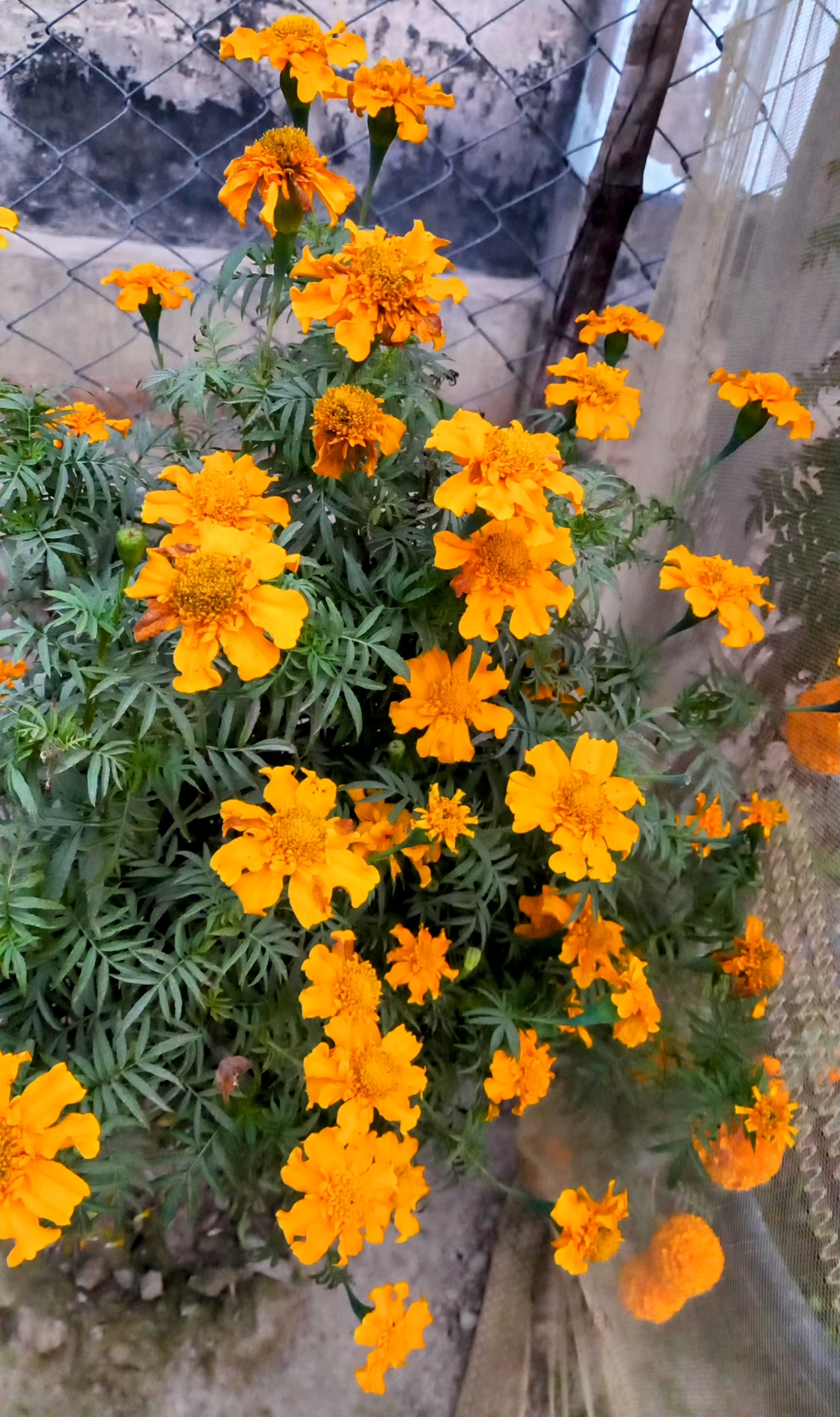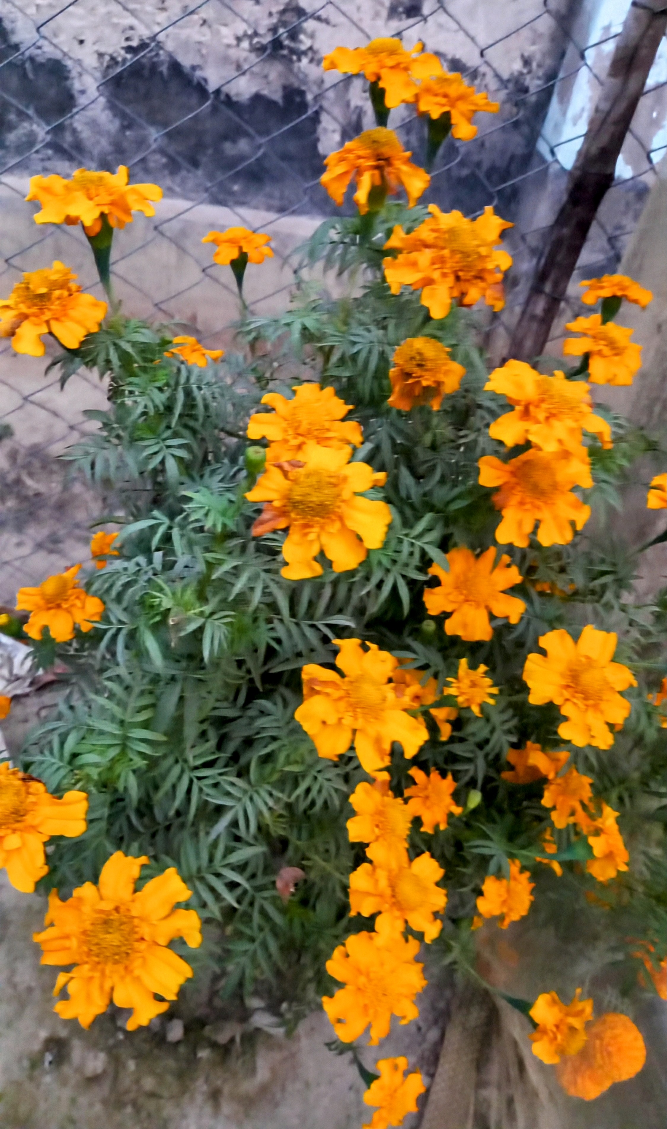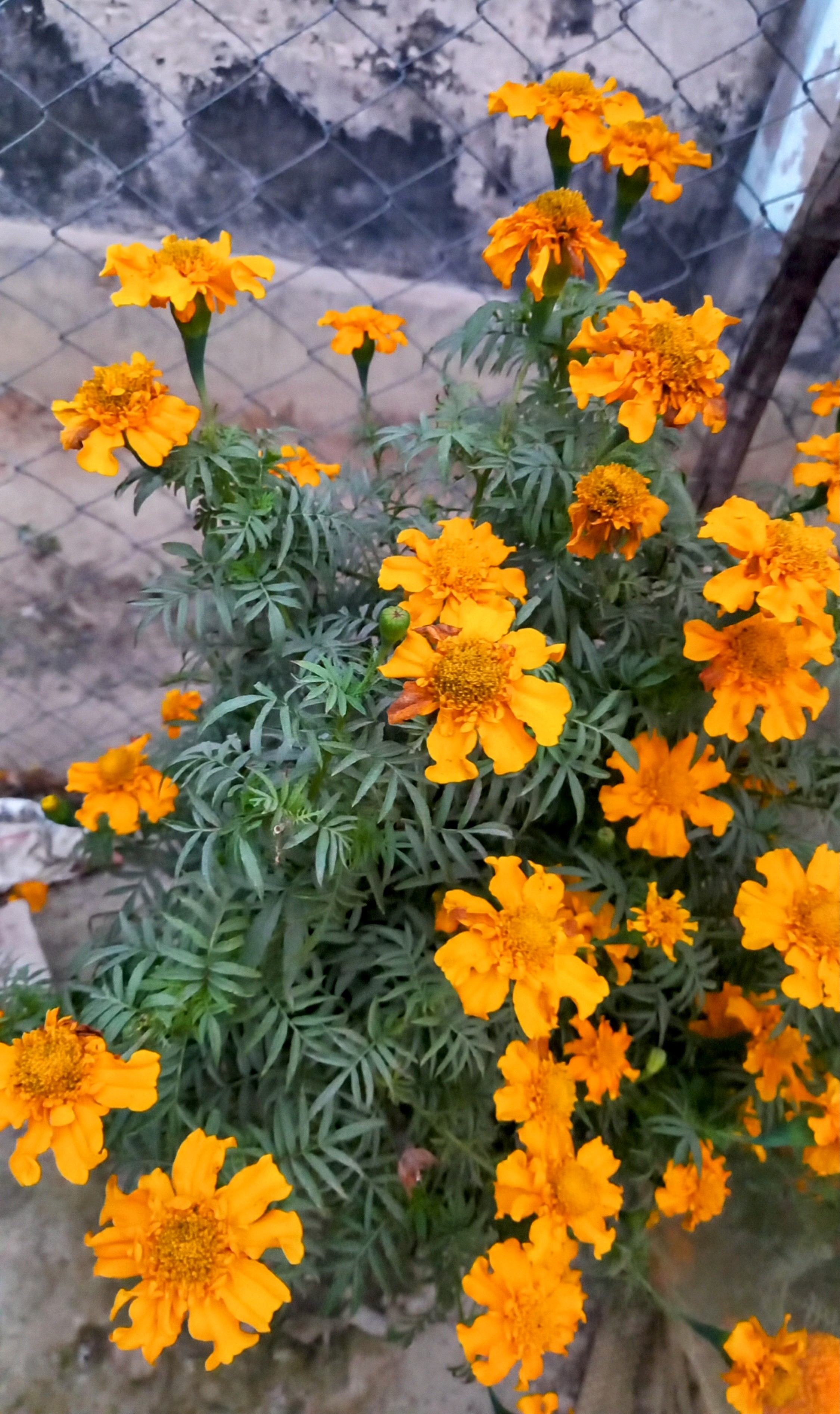 গেঁন্দা ফুল। গেঁন্দা ফুলের গাছ। সুন্দর সুন্দর ফুল ফুটেছে। তারার মত লটকে আছে। আমাকে দেখে বেড়ার ভিতর থেকে উঁকি মারছে। বুঝতে পেরেছে আমি তাদের ছবি তুলব।