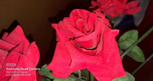 The cloth flowers that I am going to reveal to you today are red and blue in color. The red flower is the rose flower. This red rose flower was very beautiful and wonderful. These red colored flowers looked exactly like real rose flowers.