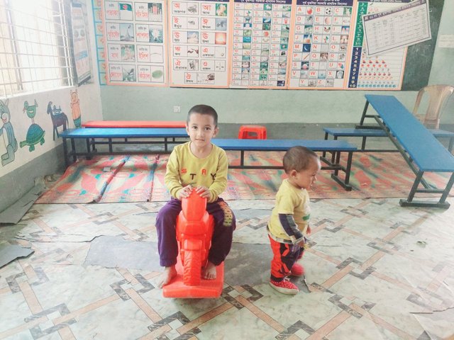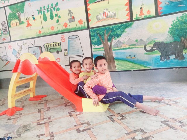 Today, my three sons went to this school in our village for some time. They played in the children's room for a long time. They were playing very happily while they were at school. After playing for some time, when it was time for me to go to the madrasa, I took them back home, even though they didn't want to come out of that joy.