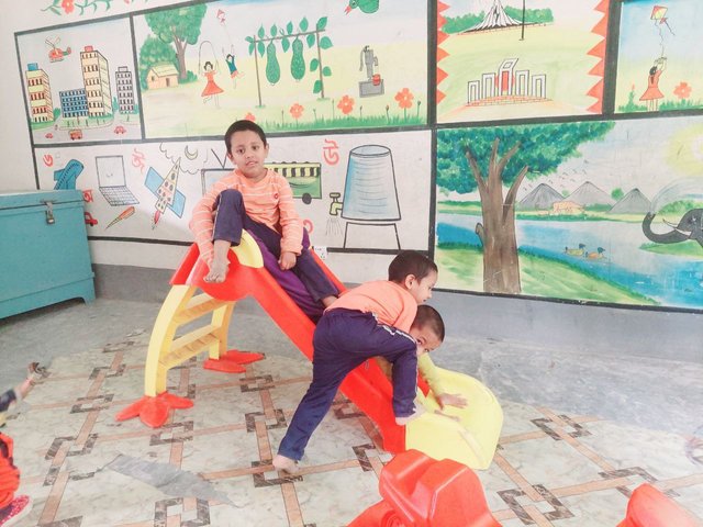 There is a government primary school in our village. The nursery room of this school in our village is decorated very beautifully. In addition to decorating this room, there are some facilities for children to play. Young children play while studying. This helps children develop mentally, and makes young children interested in coming to school.