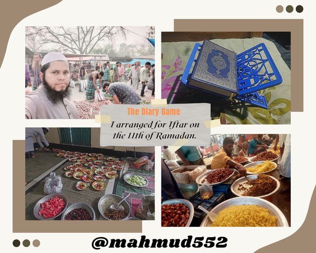 I have to go to the market to buy Iftar items and household goods. For this, I return home after offering Zuhr prayers. After coming home, I quickly leave for the market. When I go to the market, I first buy various daily necessities and raw materials for the house. After buying those things, I leave them at someone's shop and go to buy Iftar. Here, various types of Iftar and sweets are available. After buying Iftar, I return home.