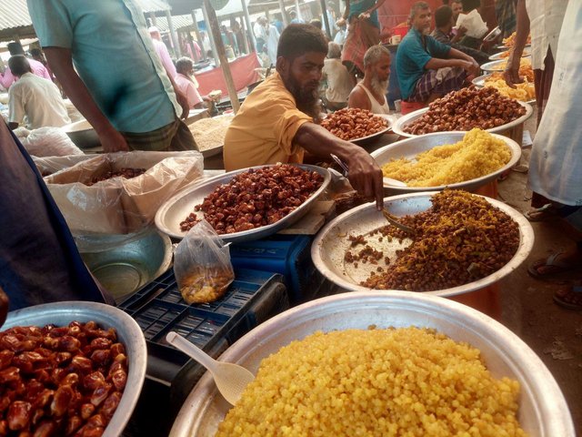Today being Wednesday, it was a little easier to arrange for Iftar, because the biggest market in our area is held on Wednesdays. Most of the people in our area buy their daily necessities from that market. Everything is available at this Ratankandi market on Wednesday. Our market is famous for buying and selling cows and goats. People come from far away to this market. It is a traditional market in our area.