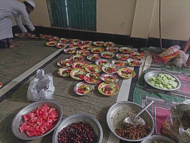 When I return home, it is time for Asr prayer. When the call for Asr prayer comes, I go to the mosque to offer Asr prayer. After the prayer, I start organizing Iftar for all the worshippers in the mosque. Today, I arranged for Iftar for all the worshippers in our mosque. I distribute the Iftar items with the youth of the area.