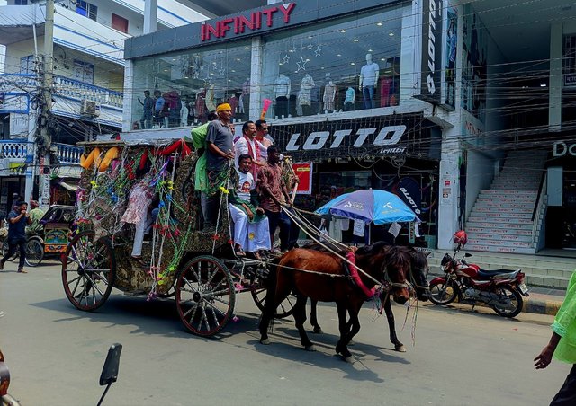 Yesterday I went to Sirajganj on a special occasion. When I went there, I saw various arrangements on the occasion of the Bengali New Year on Pahela Baishakh, especially a few groups taking part in a procession, and in front of that procession I saw a horse-drawn carriage, that horse-drawn carriage was decorated in various ways, that horse-drawn carriage was going ahead and in the procession, people from different groups and organizations were taking part in the procession.