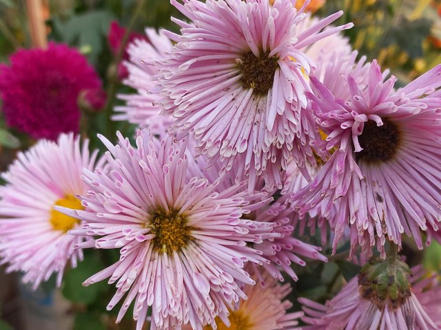 Wishing everyone good health, the photographs that I am going to share today are Pink Aster flowers. These flowers come in white and pink and other colors. I especially like this color. The flowers are beautiful to look at. So I will share them with you, I hope you like them.