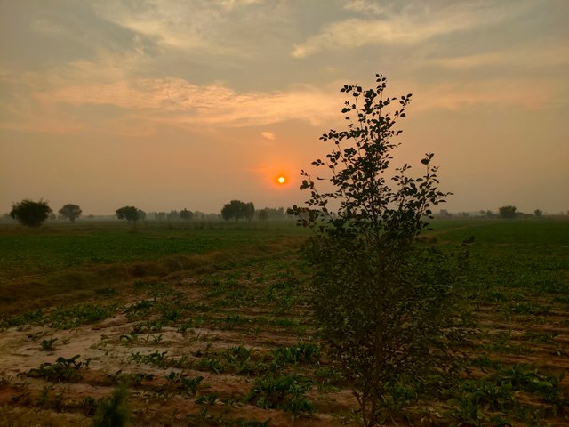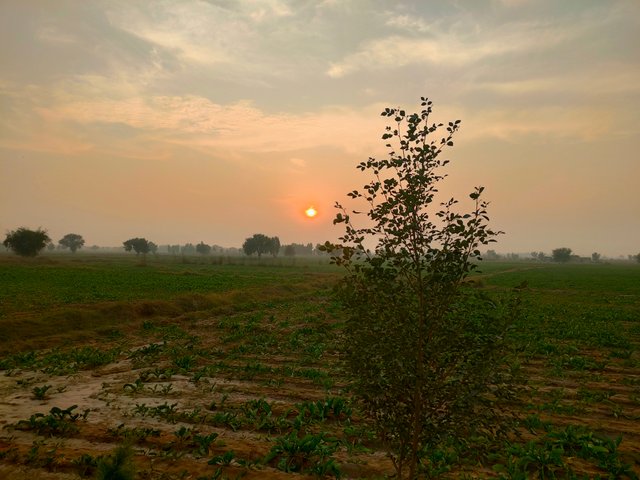 When the sun started rising, I was walking in the yard, then I went to the kitchen to make breakfast. Then I cooked breakfast. First I made parathas, then I made eggs, and finally I made tea and yogurt. I do this every day. I went to the children's bedroom. The children were playing games on their mobile phones in the bedroom. I freshened up the children and had breakfast with them. The children are on vacation due to winter, so the children are at home. Then I will be busy with household chores. This evening, I took some pictures of the sunset while standing in my village.