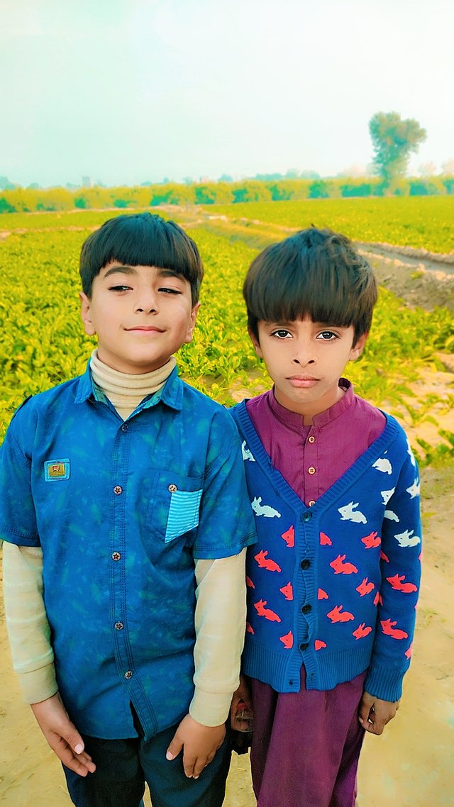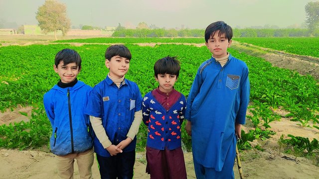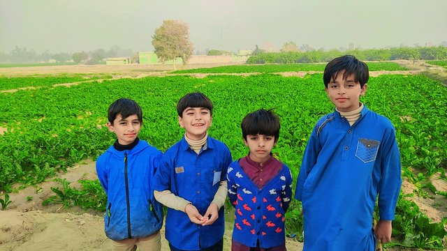 When the sun started rising, I was walking in the yard, then I would go to the kitchen to make breakfast. Then I cooked breakfast. First I made parathas, then I made eggs, and finally I made tea and yogurt. I do this every day. I went to the children's bedroom. The children were playing games on their mobile phones in the bedroom. I freshened up the children and had breakfast with them. The children are on vacation due to winter, so the children are at home. Then I would be busy with household chores. This afternoon, I took some pictures of the children near my beetroot crop, who were playing with my son.